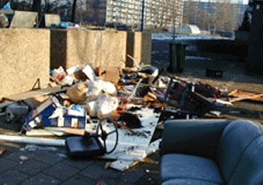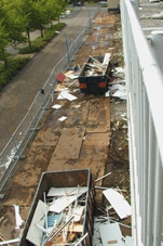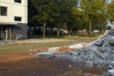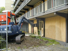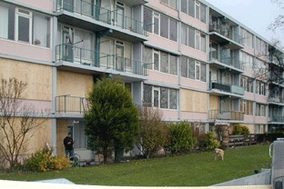 januari 2004 De uitverhuizing is in volle gang en de leeggekomen flats worden dichtgetimmerd |