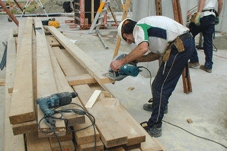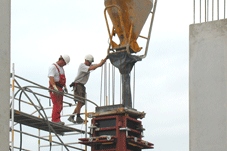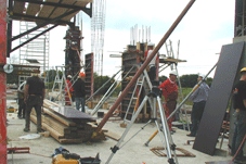 Er wordt gezaagd en getimmerd dat het een lieve lust is. Bewapening en bekistingen worden geplaatst en er wordt vrijwel dagelijks beton gestort. Op de werkvloer heerst dan ook een enorme bedrijvigheid. Wat vooral opvalt is de veelzijdigheid van de bouwvakkers. Staan ze het ene moment een kolom te stellen, even later zijn ze bezig met hamer en cirkelzaag en passant staan ze ook nog even een stuk bewapening te vlechten. |